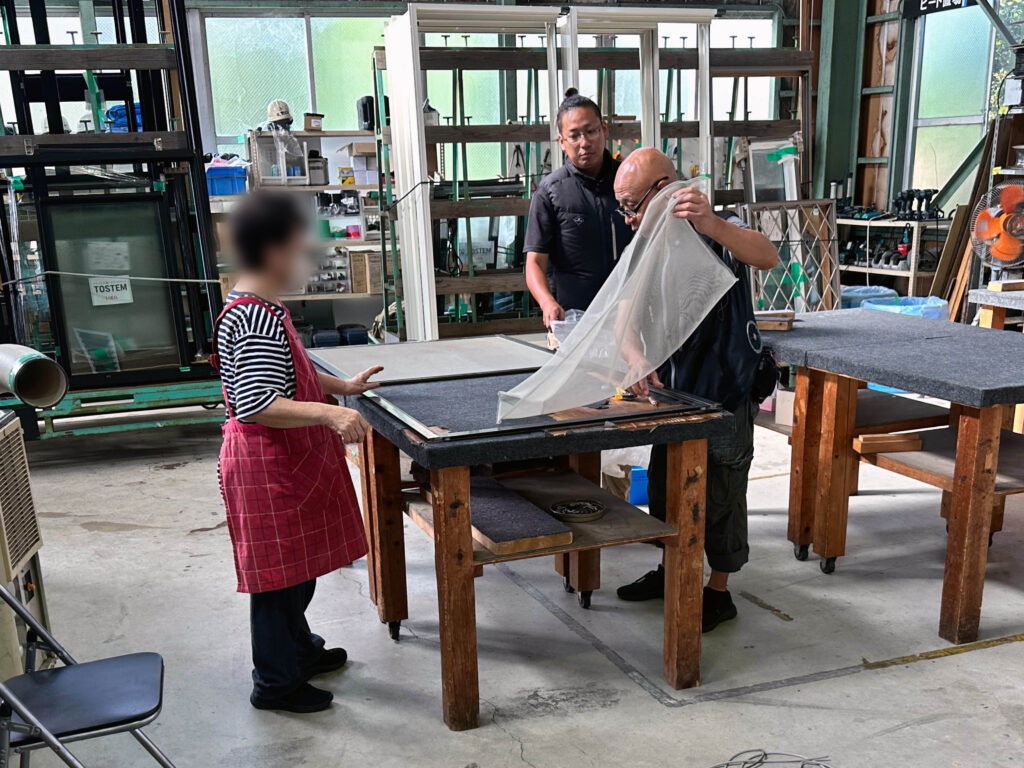 さらに今回は、スタッフによる サッシの組み立て実演 も行いました。