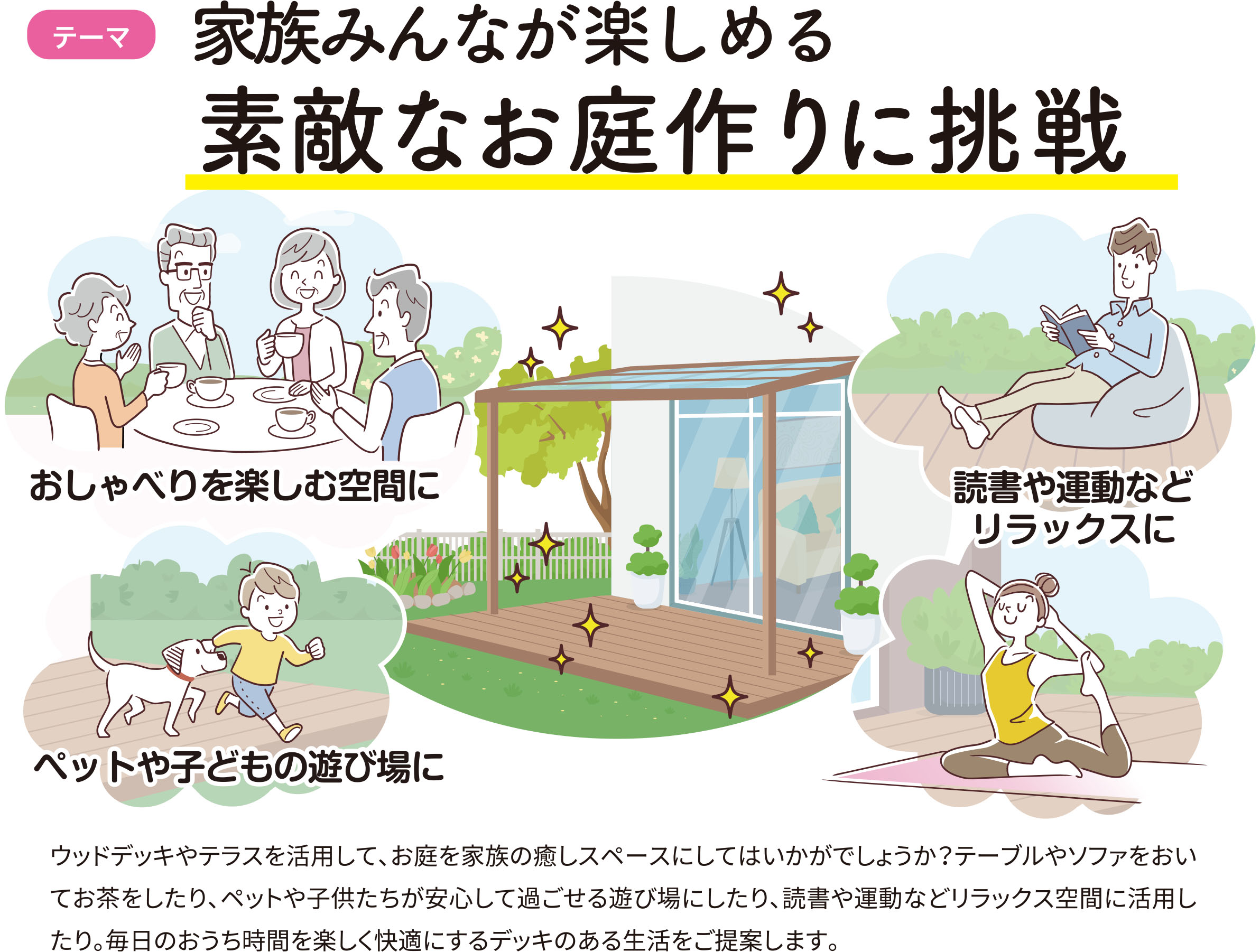 今月の「すまいの健康・快適だより」のテーマは、『家族みんなが楽しめる 素敵なお庭作りに挑戦』です。